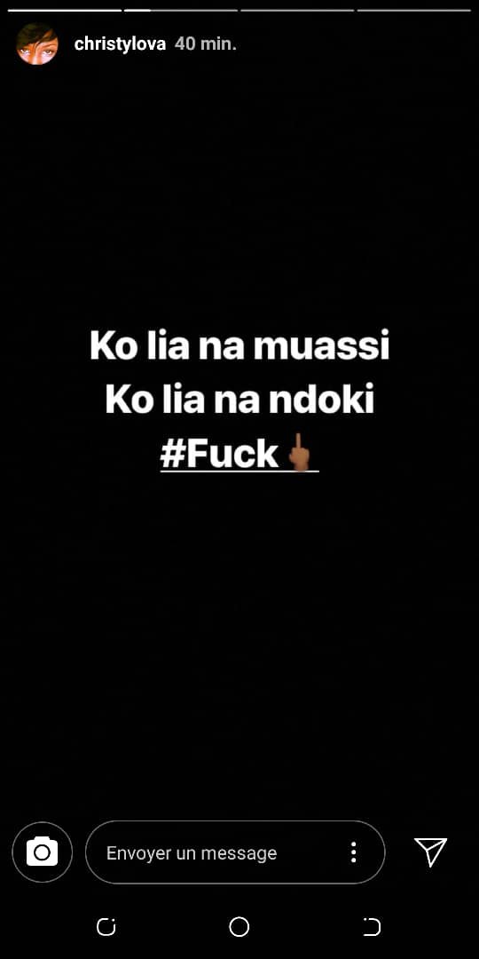 c’est par cette phrase que la charmante Christy Lova ouvre les hostilités sur son statut le faisant suivre d’un hashtag et d’un émoticône insultant mais cependant anonyme.