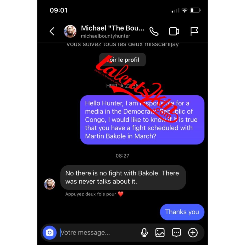 Question de la Rédaction de Talents2kin : monsieur Hunter, est-il vrai que vous avez un combat prévu contre le boxeur congolais Martin Bakole en mars prochain ?