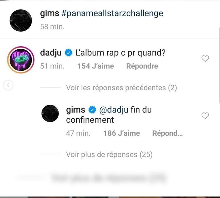 Alors qu’il a posté un freestyle Rap sur son Instagram, son petit frère Dadju lui simplement demandé quand est-ce qu’il comptait sortir un album rap. Gims a répondu « fin du confinement » !