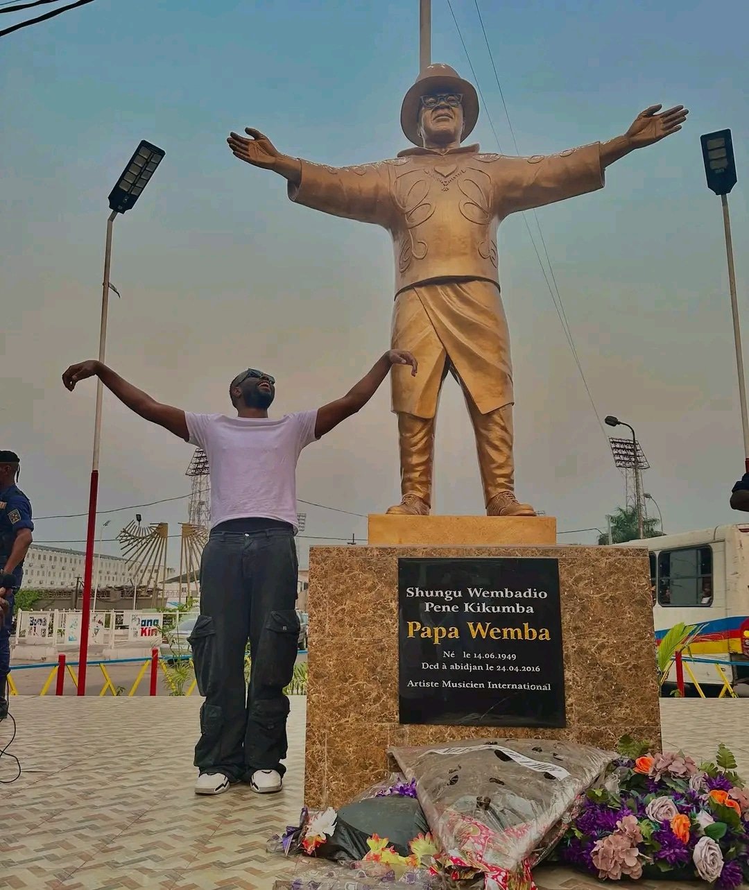 Ce lundi 22 janvier, GIMS a joué les explorateurs loin des quartiers chics de la capitale. En vadrouille dans divers coins de Kinshasa, il a même fait un détour par le célèbre quartier de Matonge, situé dans la commune de Kalamu. Là, il a pris la pose devant le monument de la légende Papa Wemba, un moment qui a dû résonner comme une mélodie dans le cœur des fans.