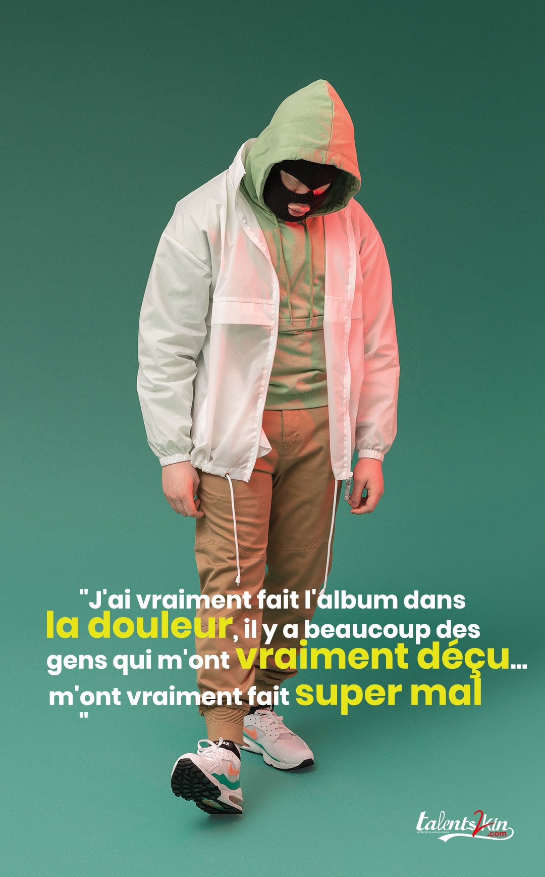 Ces épreuves ont guidé l’écriture de son nouveau projet qui est produit par son propre label Sale Sonorité Records « J’ai vraiment fait l’album dans la douleur, il y a beaucoup des gens qui m’ont vraiment déçu… qui m’ont vraiment fait super mal », la sortie de ces épreuves a permis à l’artiste de se rapprocher beaucoup plus de ses parents dont l’apport a été inestimable pour l’artiste.